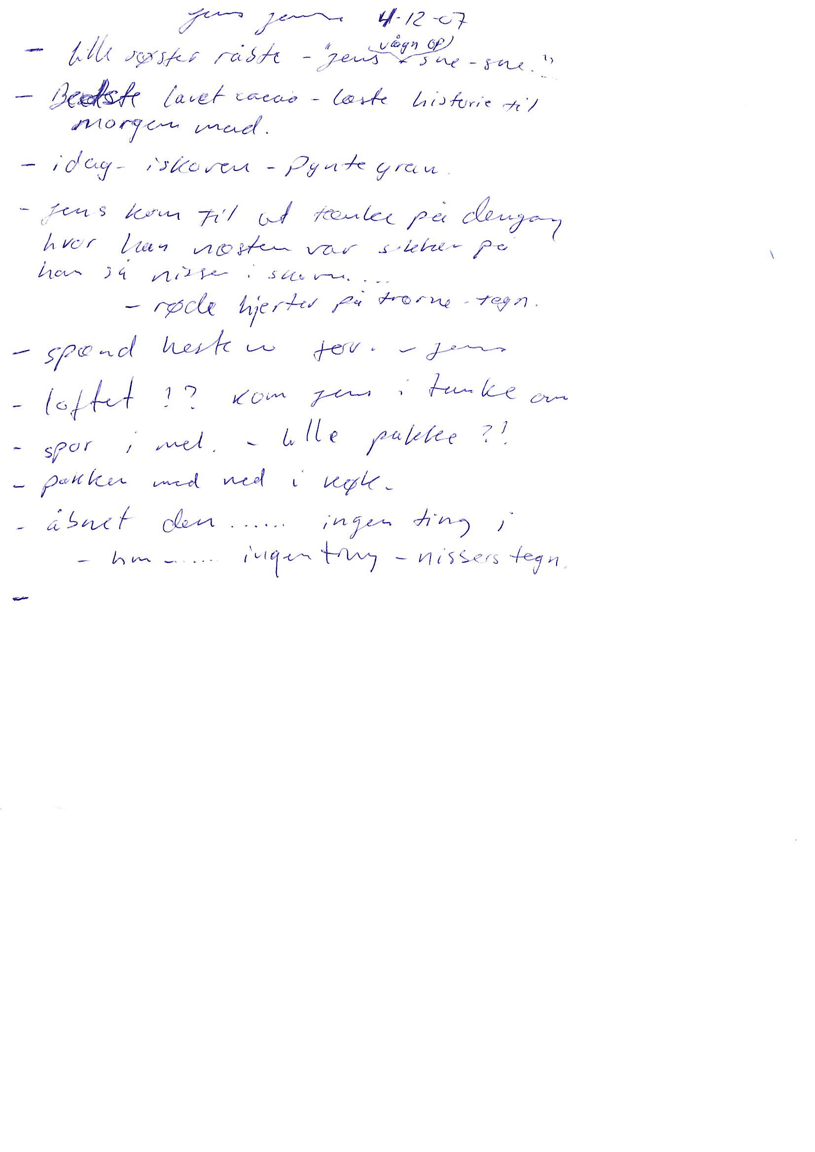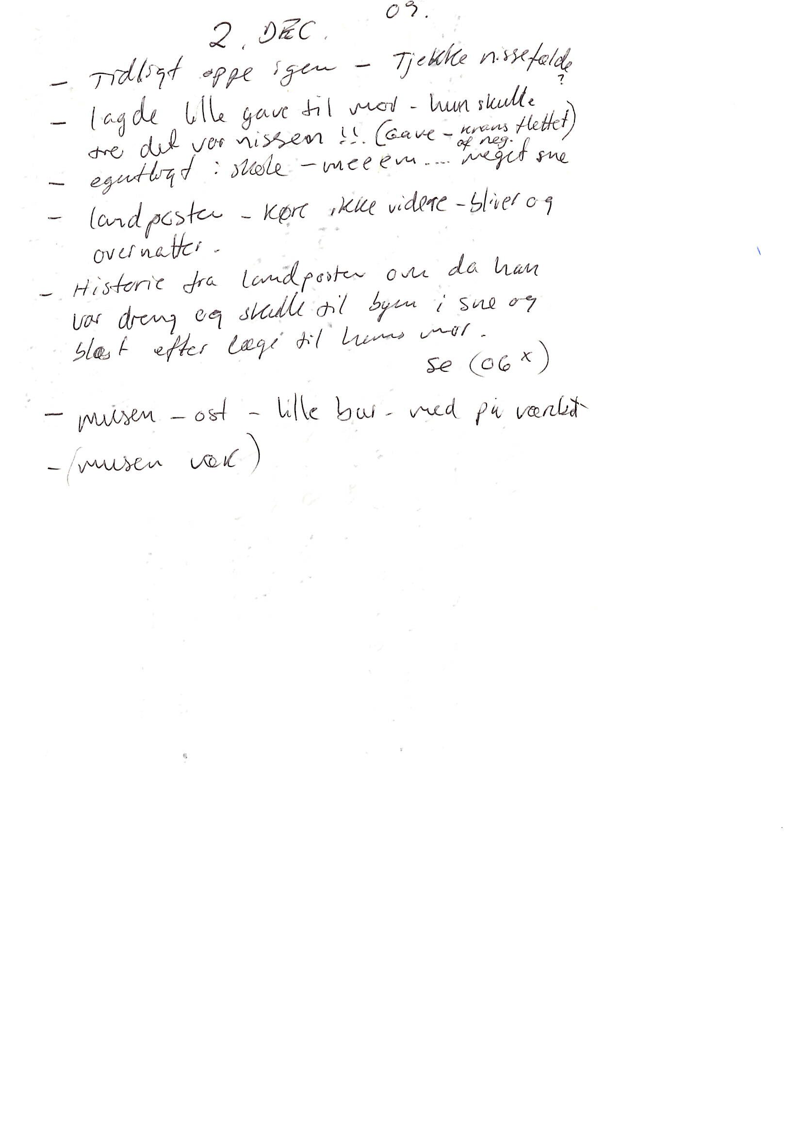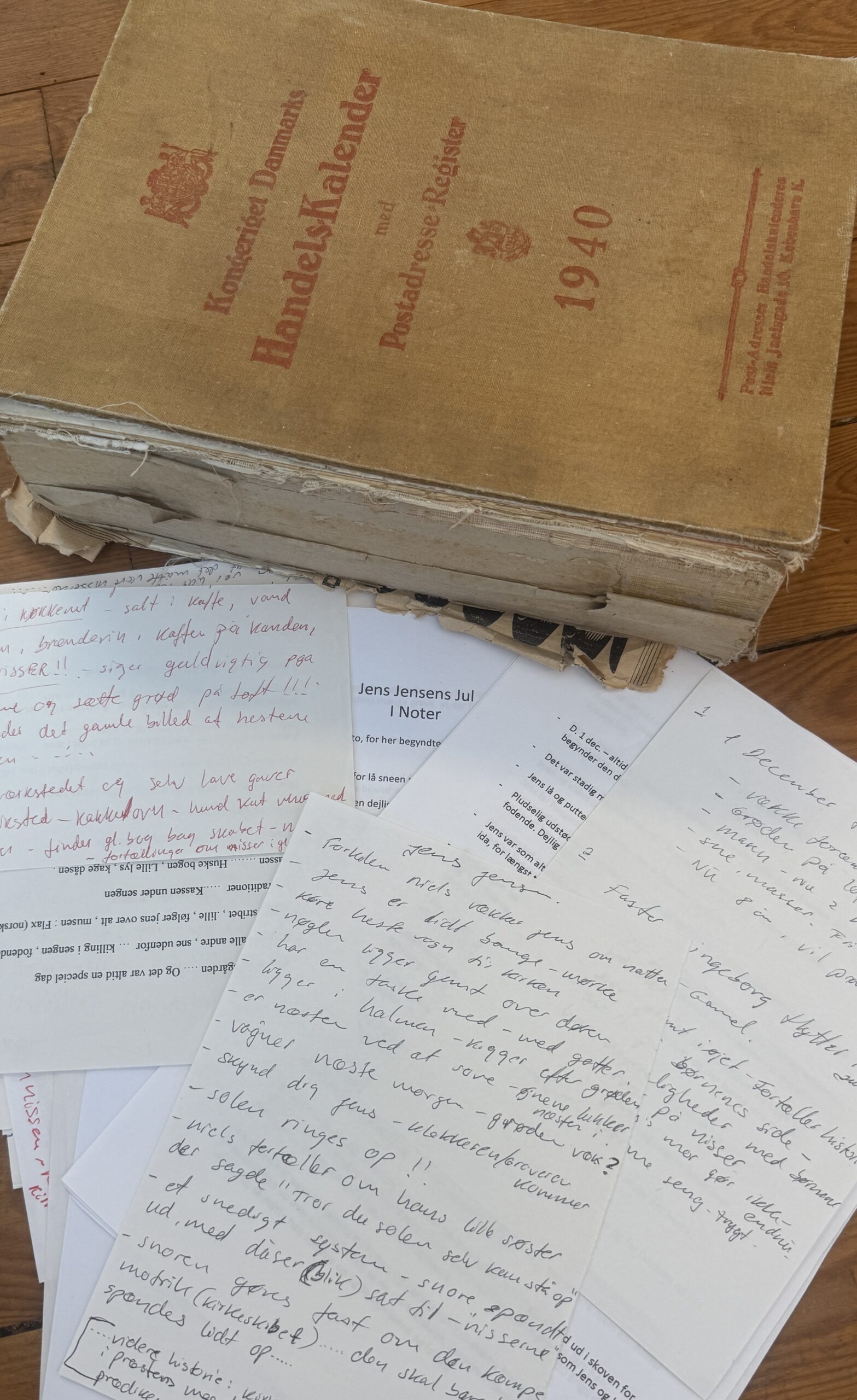 Her kan du se de originale noter, skitser og små idéglimt, der senere blev til historien om Jens Jensen og hans december.