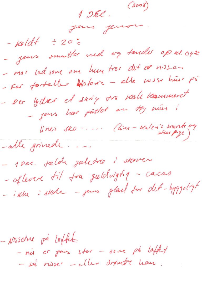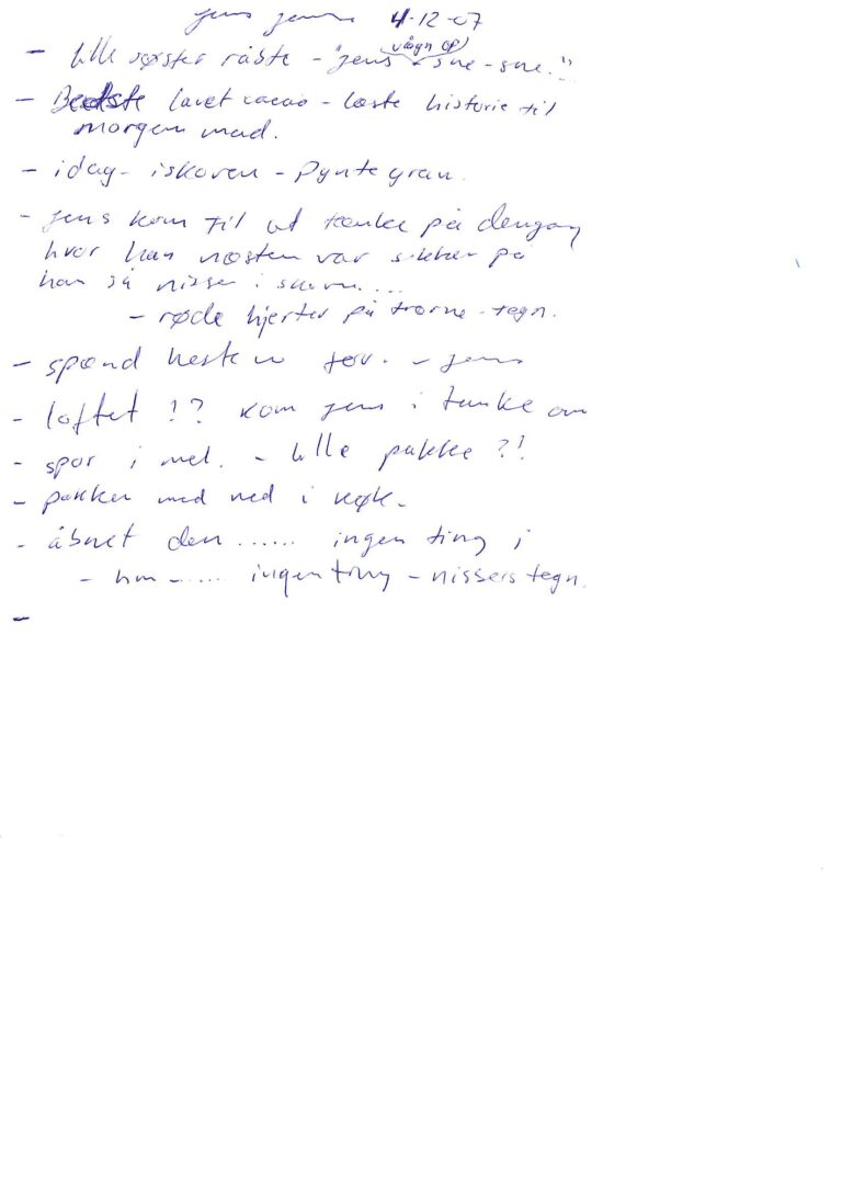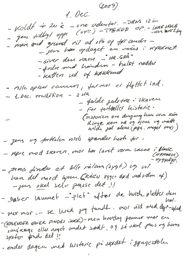 Her kan du se de originale noter, skitser og små idéglimt, der senere blev til historien om Jens Jensen og hans december.